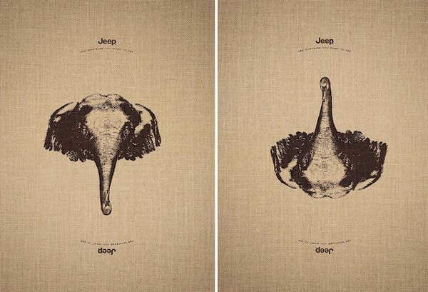 Why It Works: The ad uses an image that can be seen in multiple ways, making you stop and look twice. It ties back to Jeep’s adventurous vibe: with their vehicles, the world is open to your unique interpretation.